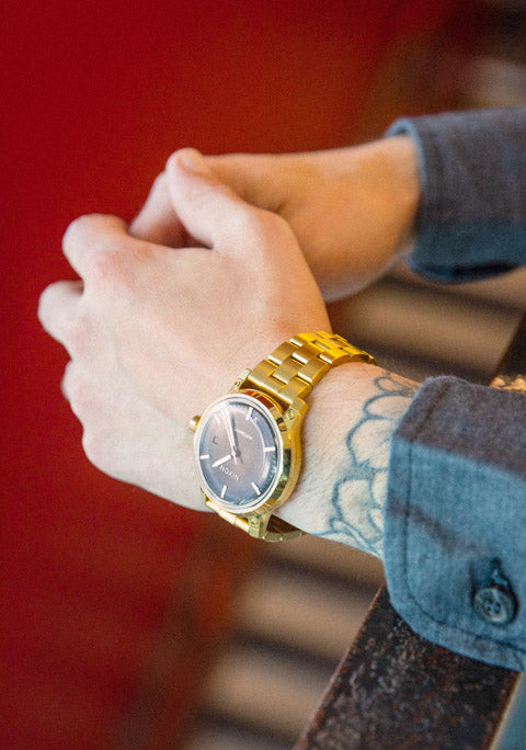 Premium Miyota 8215 Japanese Automatic movement. Twenty-One jewel three hand with date function. A unidirectional tungsten fly wheel winding system with a 40-hour power reserve.