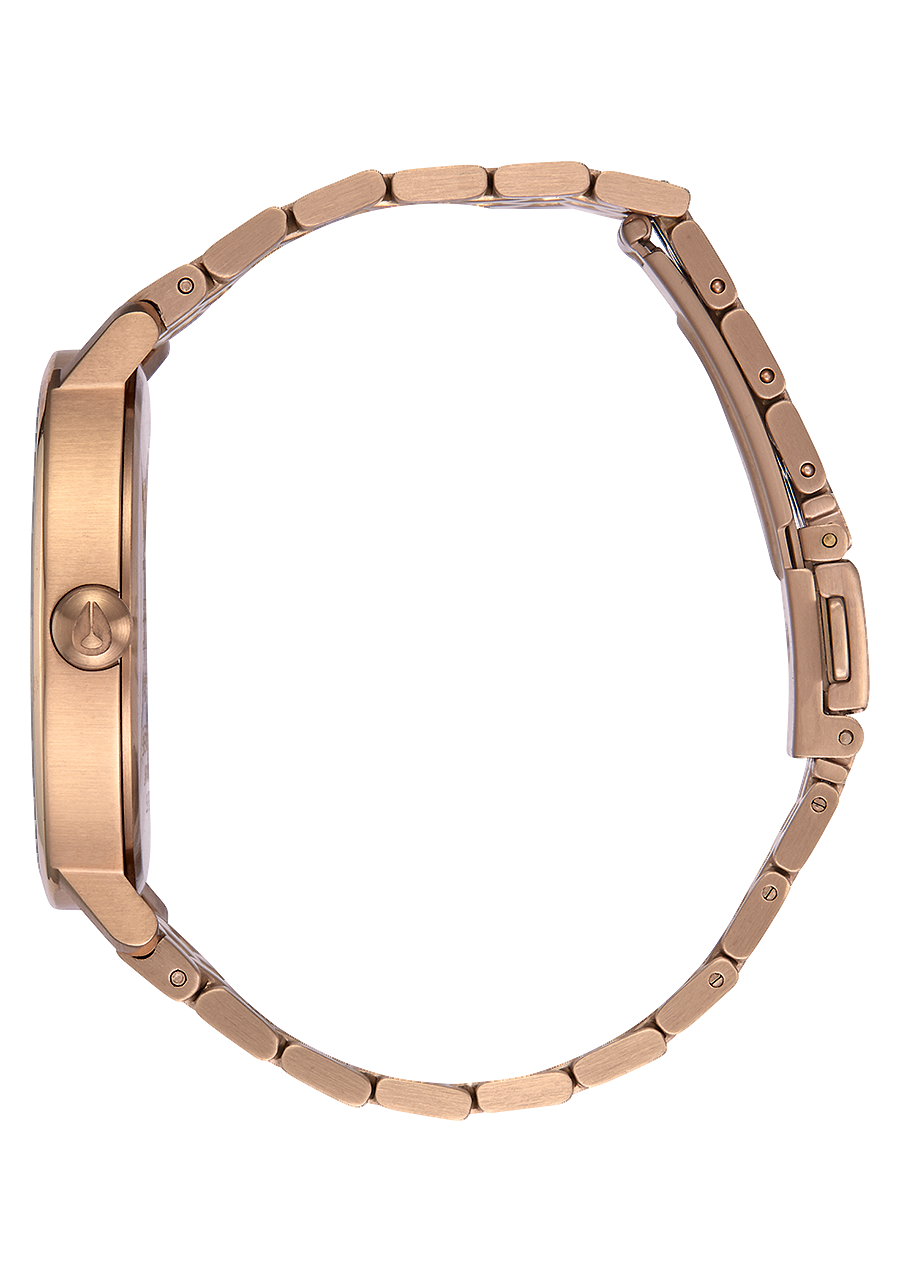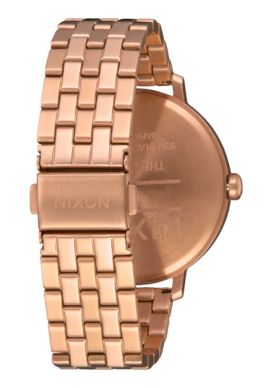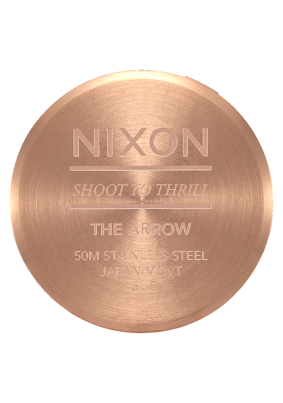 Dial features applied Nixon wordmark and hour markers in Arabic and stick format. Also features printed numbers and custom molded hands.