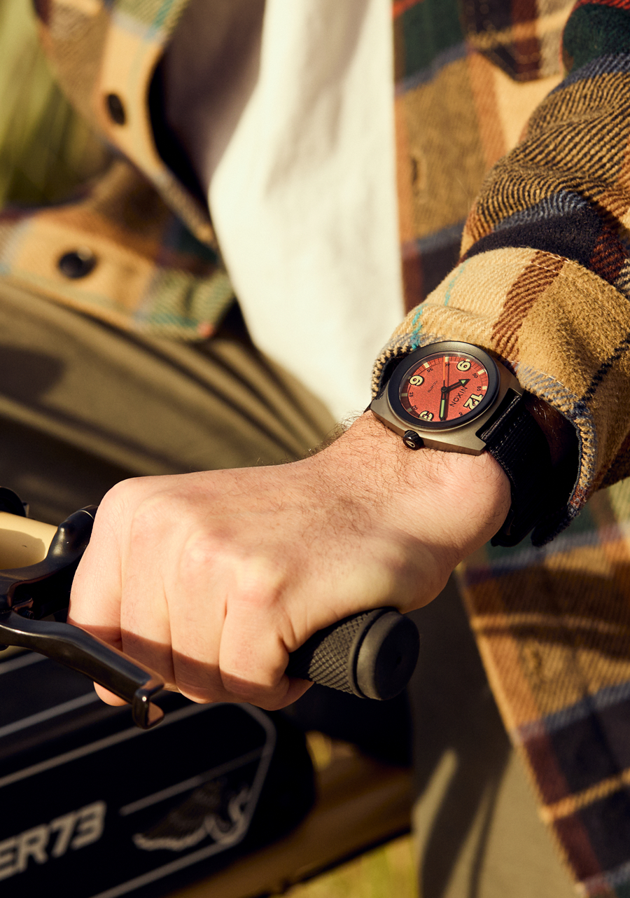 Meet the Clutch 42. The go-anywhere, do-anything watch. For those whose fashion is function, a bold case design and abrasion-resistant, quick-drying nylon band put the Clutch 42's comfort and durability right at the forefront, while its LUME-loaded numbers and hands make sure you're never left in the dark. From a brisk morning walk to a midnight summit expedition, the Clutch 42 is geared up to get down.