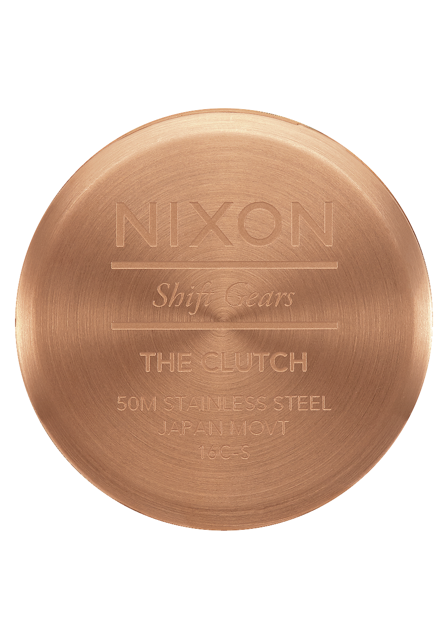 38 mm, 50 meter/5 ATM solid stainless steel case with a hardened mineral crystal, screw down caseback.