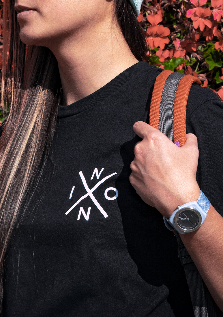 The Nixon Light-Wave watch features a 36mm case diameter made from recycled ocean plastic, with a stainless steel caseback. It includes a 20mm custom recycled ocean plastic woven strap. The dial showcases a semi-transparent dial and a unique design that highlights the solar panel within the watch face.