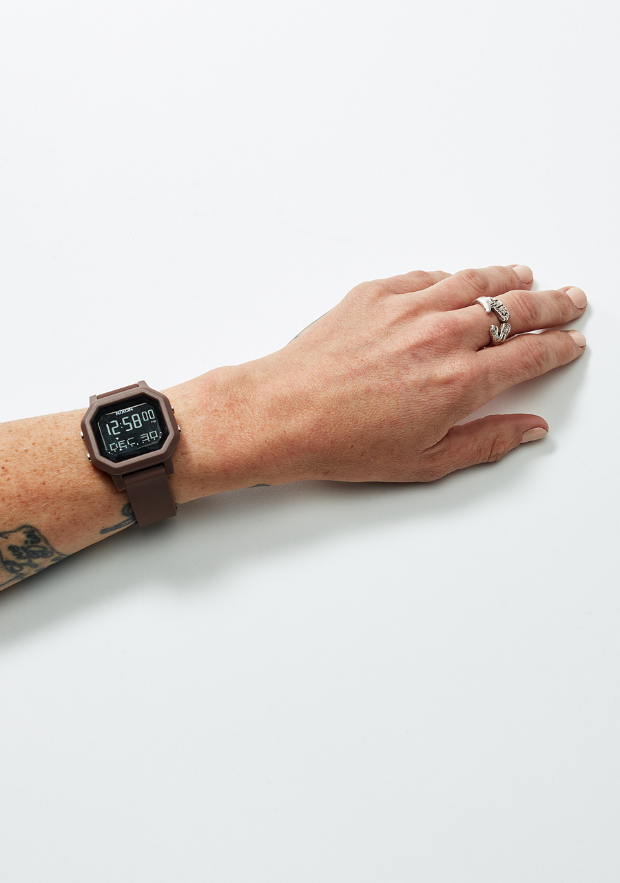 An essential tide watch with both style and substance, the Siren matches contemporary design with surf-specific features and sustainable materials. #Tide recycled plastic uses ocean-bound waste to create the super-durable case material, which means cleaner breaks for everyone. Plus, the basic tide functionality and soft silicone band mean it slays both in and out of the water.