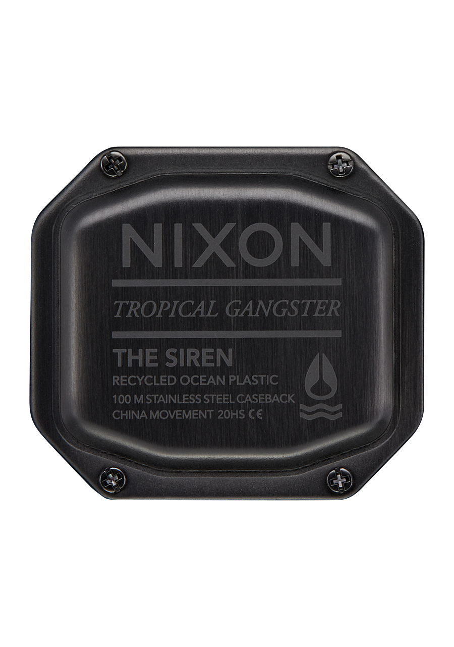 The Siren’s case is custom injection molded reinforced recycled ocean plastics and the band is custom injection molded ultra-soft silicone with stainless steel buckle and screw-bars. Part of the case is eco-friendly, made from recycled ocean plastics.