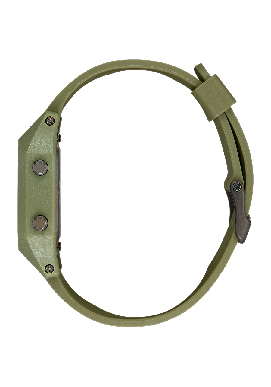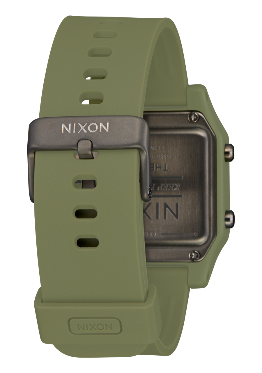 The Nixon Staple watch is highly durable for both active and everyday wear, thanks to its case made from recycled ocean plastics reinforced with custom injection-molded fiber. Additionally, it features stainless-steel pushers and a hardened mineral crystal, along with a durable rubber blend for the performance band, ensuring comfort and reliability throughout use.