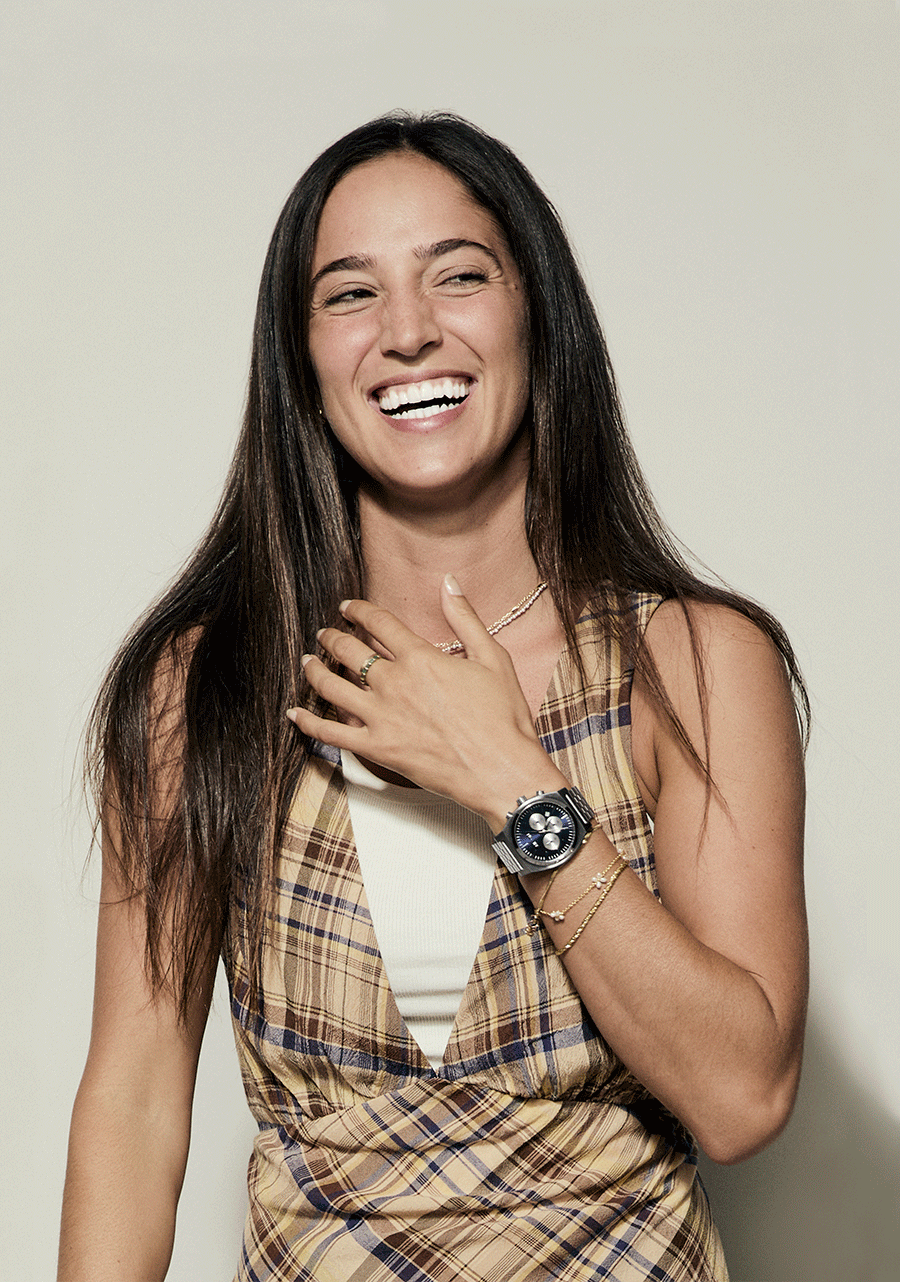 The main second hand tracks chronograph seconds. 2 o’clock subdial tracks 24-hour time. The 6 o’clock subdial tracks seconds. The 10 o’clock subdial tracks chronograph minutes.