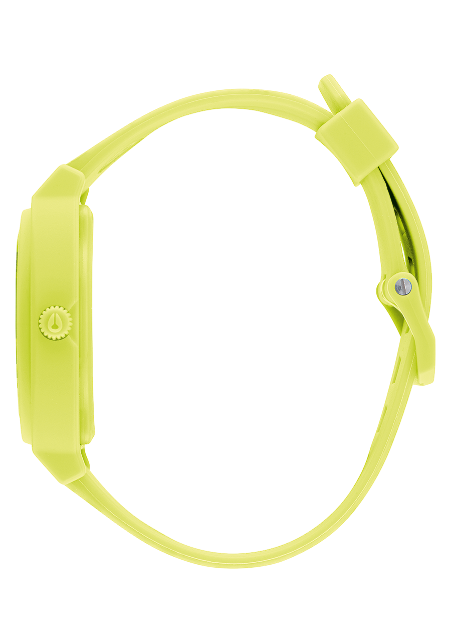 40mm custom stainless steel core case with a 100 meter / 10 ATM water rating. Watch case is encased in custom injection molded polycarbonate, fixed polycarbonate bezel, hardened mineral crystal, triple gasket molded polycarbonate crown, screw down stainless steel caseback encased in custom injection molded polycarbonate and stainless steel spring pin lugs.